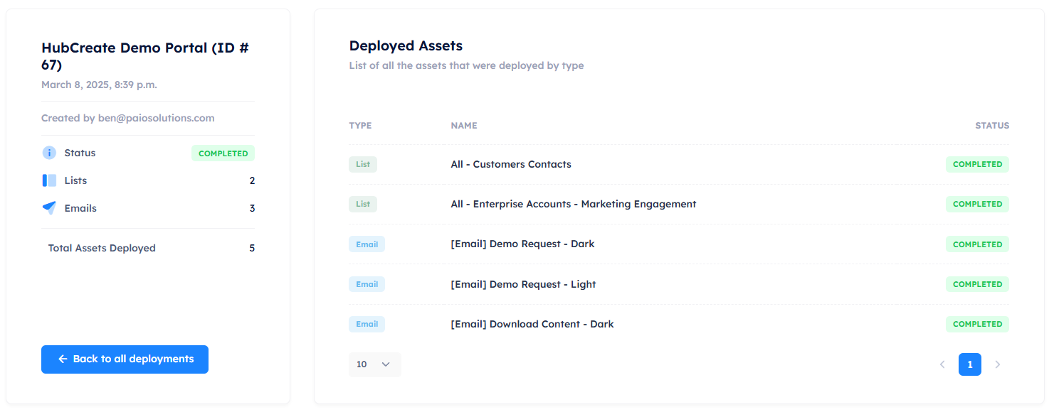 - HubSpot Account: See which HubSpot account the deployment was made to.