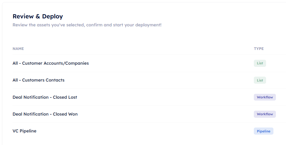 Deployments in HubCreate allow for a seamless integration between your HubSpot account and the assets you need, ensuring consistency and efficiency throughout the process.